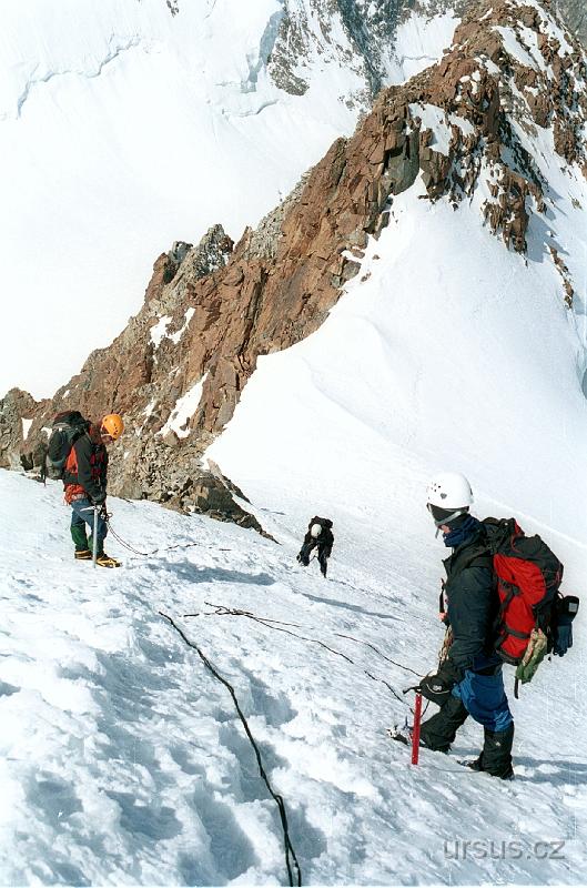 Nejprudší (avšak ne nejtěžší) část trasy je výšvih ze sedla Sattel (4359m)