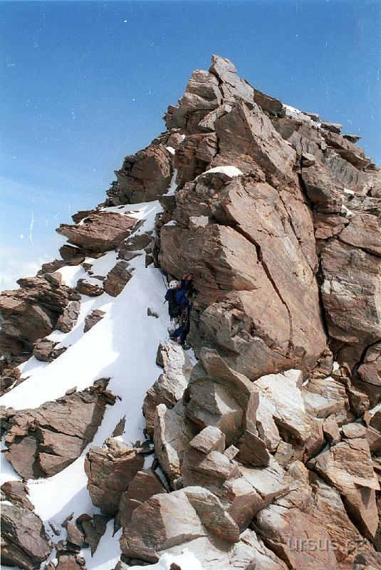 Sestup z vrcholu byl také časově i technicky poměrně náročný. Toto bylo nejproblémovější místo