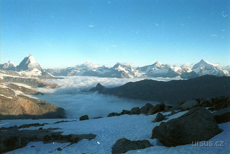 Po ránu bylo opět jako vymalováno. Jen pod námi na ledovci ležela hustá mlha