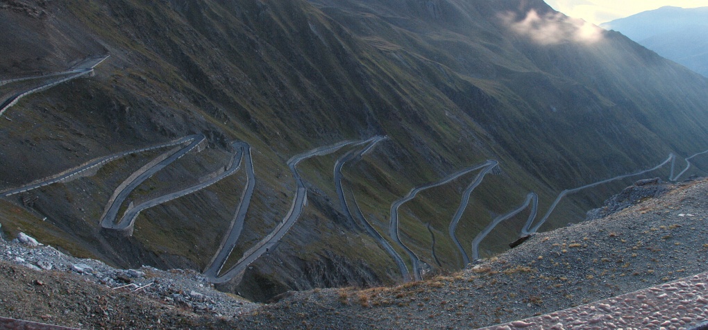 Ostré a nekonečné serpentiny do sedla Passo di Stelvio
