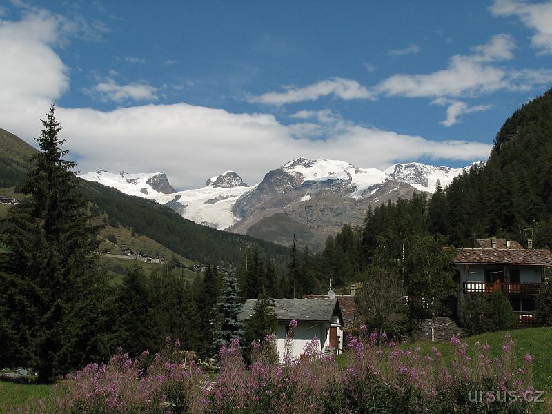 Údolí před vesnicí St. Jacques, před námi vykukuje Breithorn
