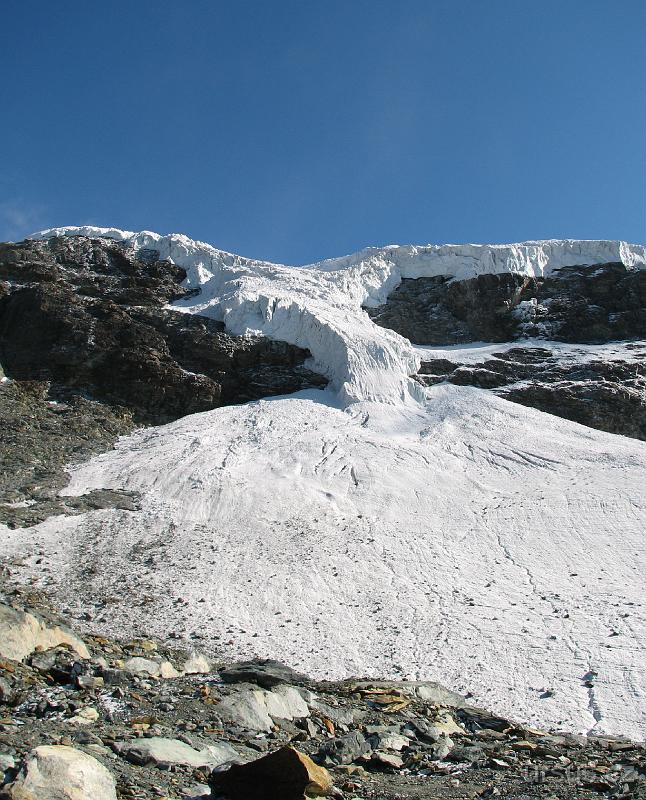 Podle mapy jsme mysleli, že půjdeme nahoru skrz tento ledovcový splaz. Realita nás odradila a my jsme ho obešli zleva