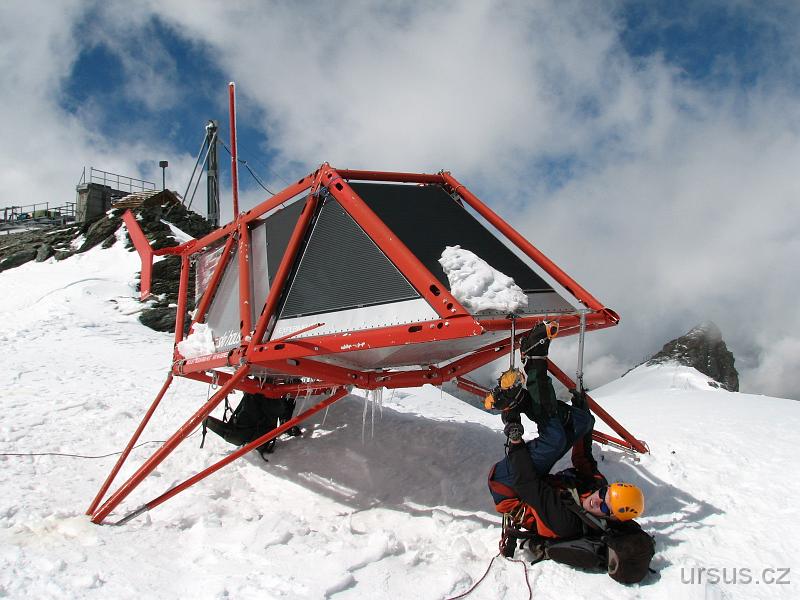 Tak tohle není UFO, tohle je prosím taky bivak, přenosný, resp. zavěsitelný na vrtulník a tudíž velmi mobilní. Břec předvádí majstrovský dry tool.