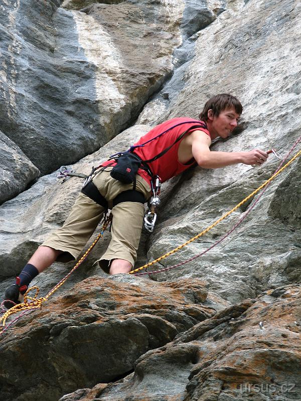 Jsme v Champoluc, vesnici kousek od St. Jacques, kam jsme si zajeli na vypečenou lezenici. Nachází se zde menší oblast s asi 25 cestami (od 4 až po 7a+; i vícedelkové), víceméně vše je přejištěno.
