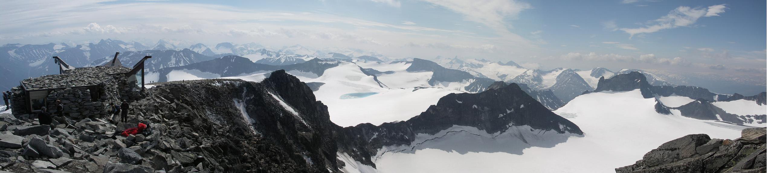 Galdhøpiggen nebyl vždy považován za nejvyšší horu Norska, o přízvisko nejvyšší norská hora soupeřil s Glittertindem, neboť některá měření naznačovala, že je díky svému ledovci na vrcholu nepatrně vyšší. Ledovec se o něco zmenšil a dnes Glittertind v soušasné době měří 2 464 metrů včetně ledovce. Dnes je tedy jednoznačně za nejvyšší horu považován Galdhøpiggen. |