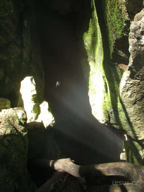 Z vchodu do propadání vychází neustále mlžný opar a okolní paprsky slunce dotváří přírodní krásy tohoto místa.