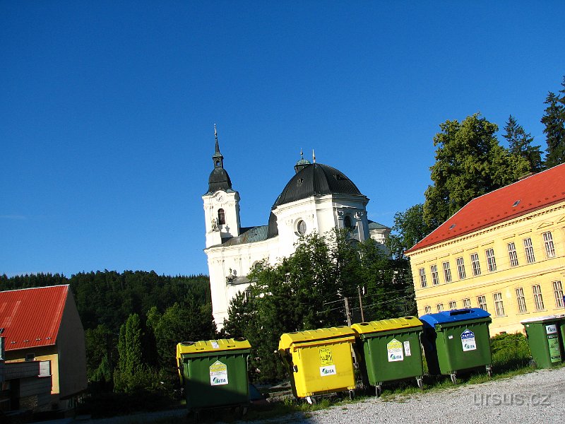 Ranní pohled z auta po probuzení... kostel v obci Křtiny.