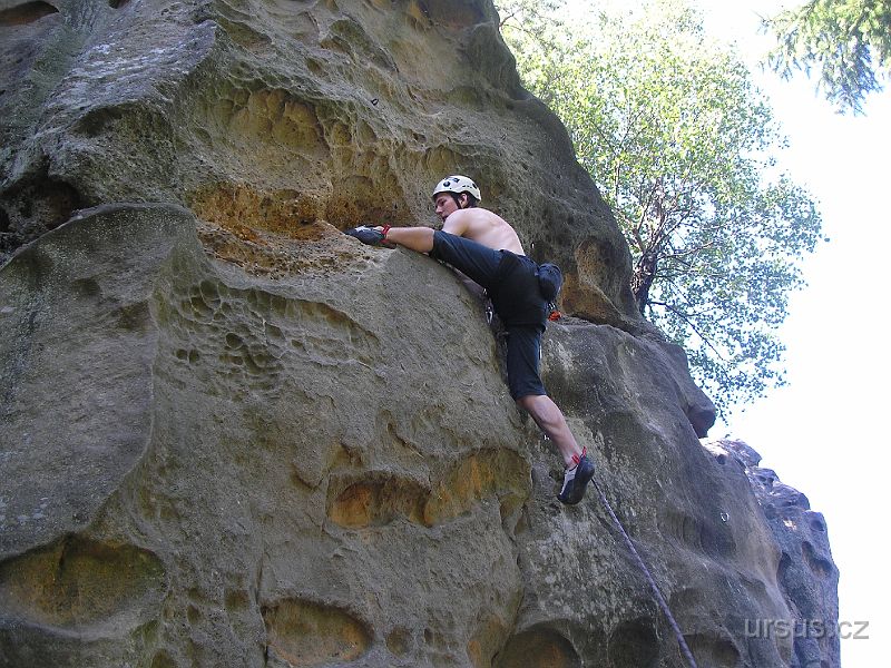 Za chvíli už se leze jako o závod... Vašek v první cestě (Napřímení Zlínské 6).