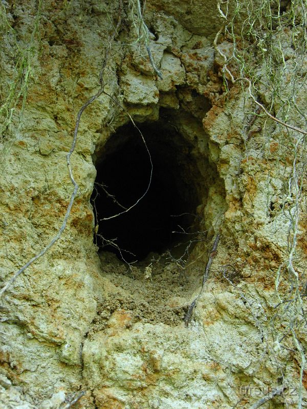 A tady pěkně zblízka... nora ledňáčka říčního!