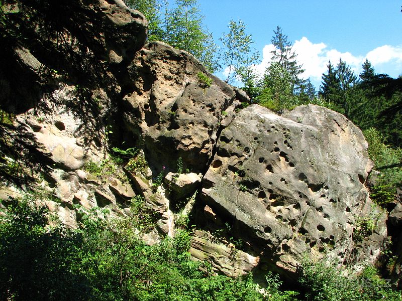 A tady už pohled na Dolní Lačnovské skály, které jsou známé svými místy až bizarními tvary, které příroda vytvořila...