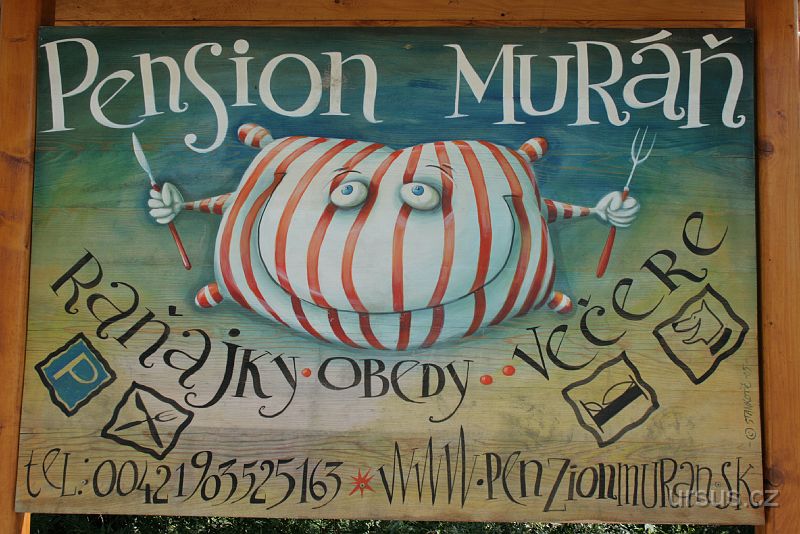 Hned při příjezdu nás na parkovišti ve Štefanové okouzlila tabule penzionu Muráň.