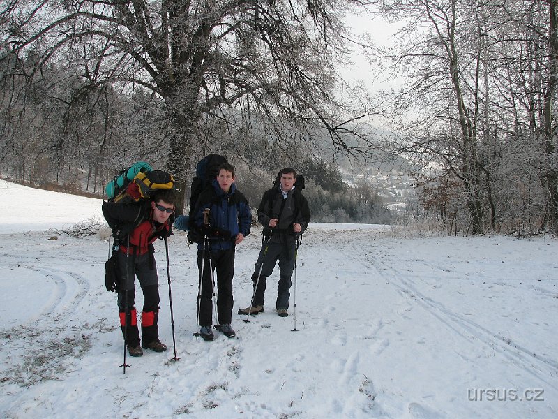 Jsme na loukách u Vysoké a Lukáš se od nás odpojuje a pokračuje domů do Vigantic.