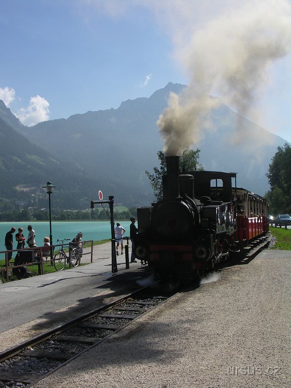 po břehu známého jezera Achensee si to sviští nejen auta, davy turistů, ale i parní lokomotiva