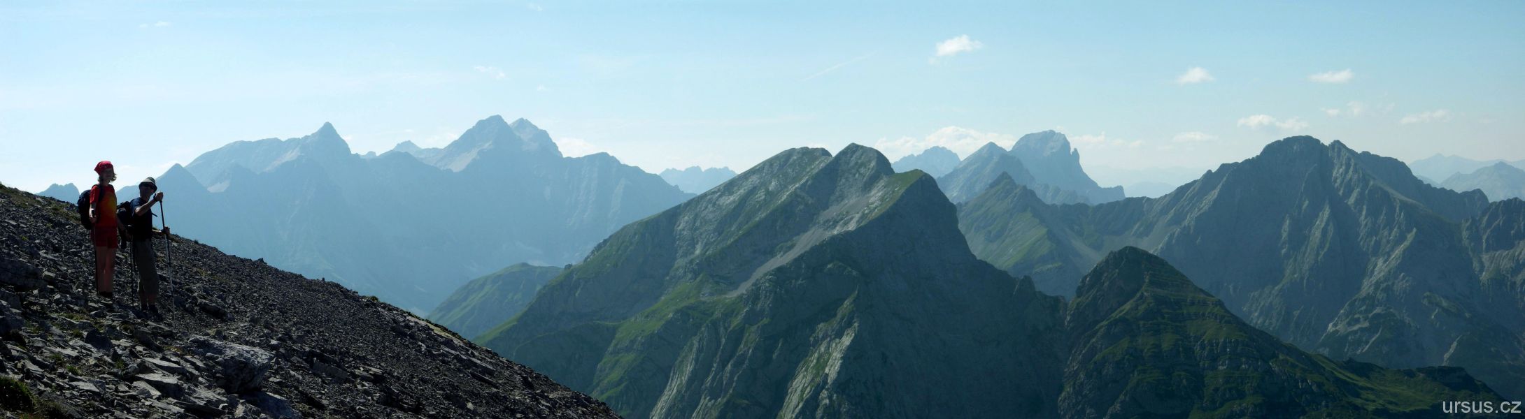 pohled do srdce Karwendelu se svým nevyšším štítem Bikkarspitze (2749m) v levé části snímku