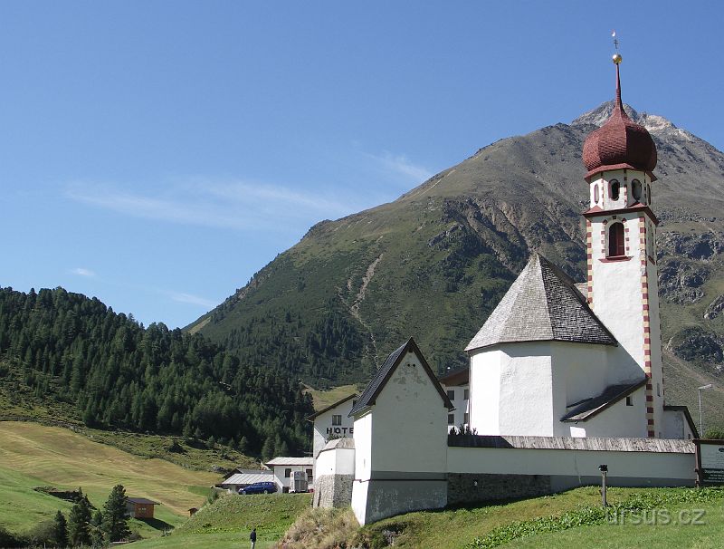 DEN 3:kostelík ve vesničce Ventu v srdci Őtztalských Alp ztácí rysy Tyrolské architektury-jsme přece u italských hranic