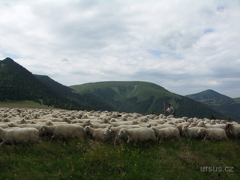cestou potkáváme stáda ovcí s bačou a psem