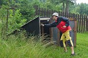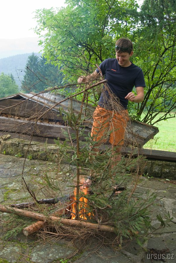 Martin, jakožto vrchní zálesák-architekt staví máju.