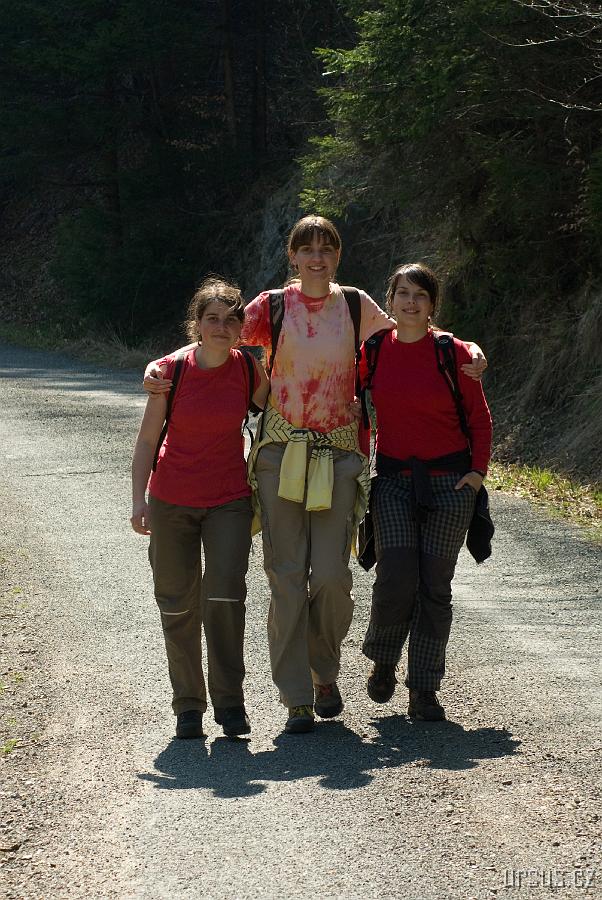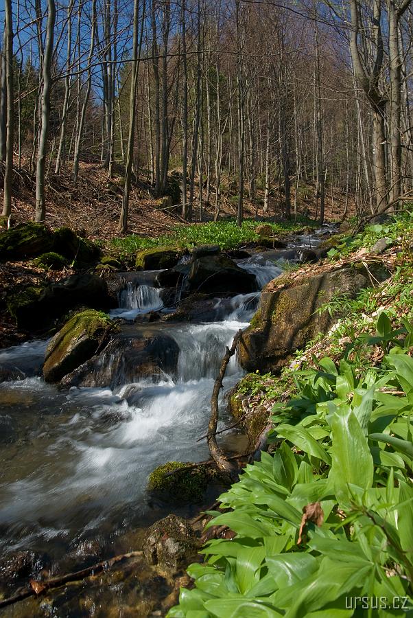 Stezka stoupá rozkvétající jarní přírodou a my u zurčícího potoka nalézáme úplné plantáže česneku medvědího, mňam! Aspoň máme zeleninu na svačinky :-)