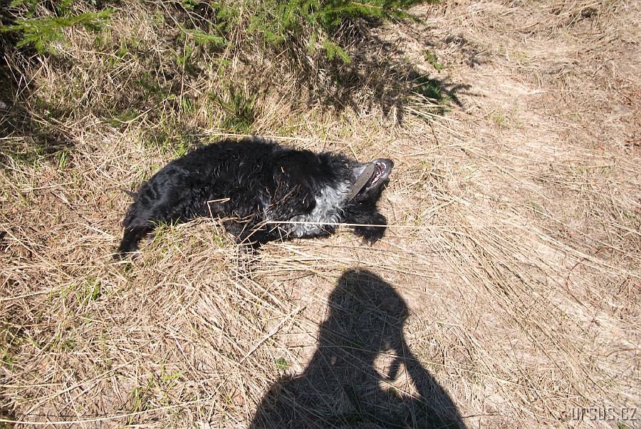 Náš čtyřnohý kamarád Tedík ovšem preferuje na válení v loňské trávě:-)