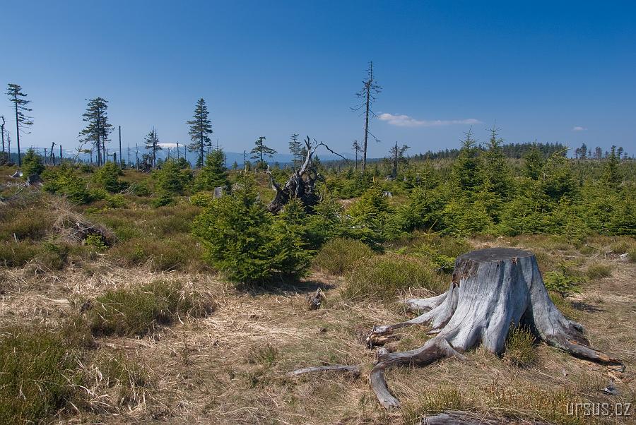 Smrk (1125 m), nejvyšší hora Rychlebských hor. Vrchol je rovný a nachází se tu vrchoviště chráněné jako přírodní rezervace.