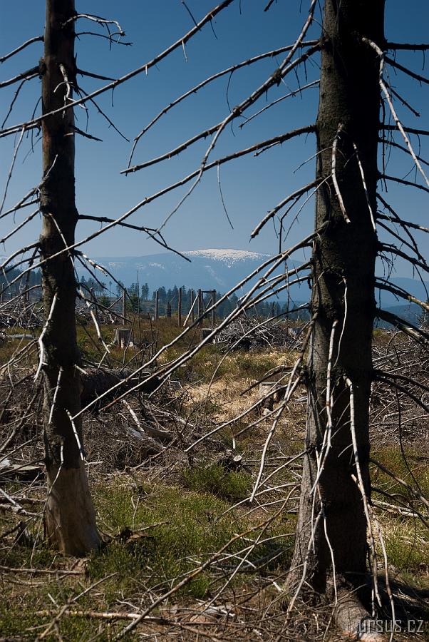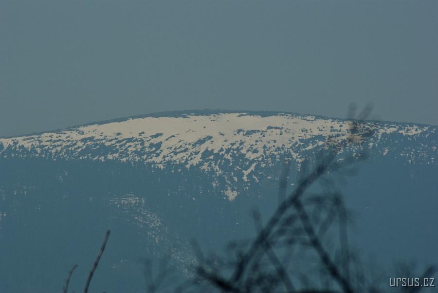 Z vrcholu je krásný pohled na zasněžený masiv Kralického Sněžníku .