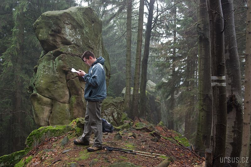Majkl si pročítá zápisky našich kolegů geocacherů, kteří tu byli před námi.