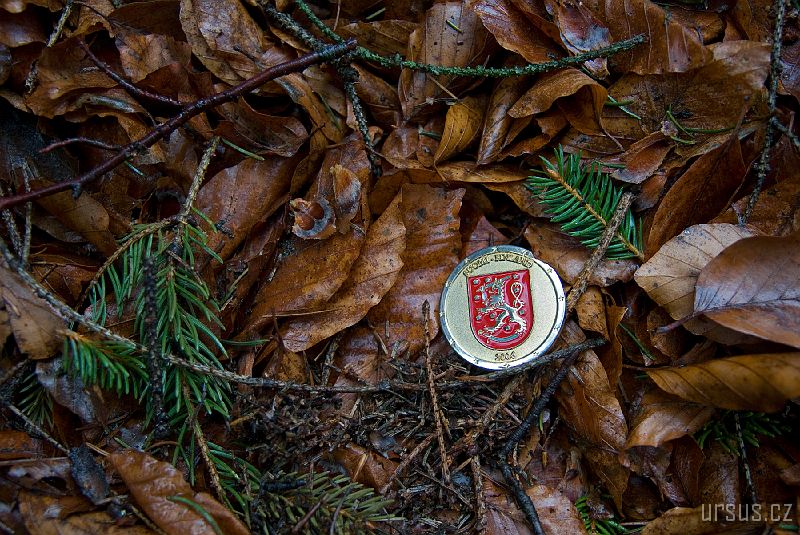Zátiší se geocacherskou specialitou- geocoinem, který k nám přicestoval až z dalekého Finska.