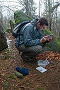 Michal konzultuje naši polohu s GPSkou. Oba jsme totiž fandové hry Geocaching a protože nejsme žádné "béčka", tak jsme si pro dnešní den vymysleli rovnou 3 cíle-poklady. Pokud chcete o hře geocaching vědět více, pak můžu doporučit stránku www.geocaching.cz a www.geocaching.com.