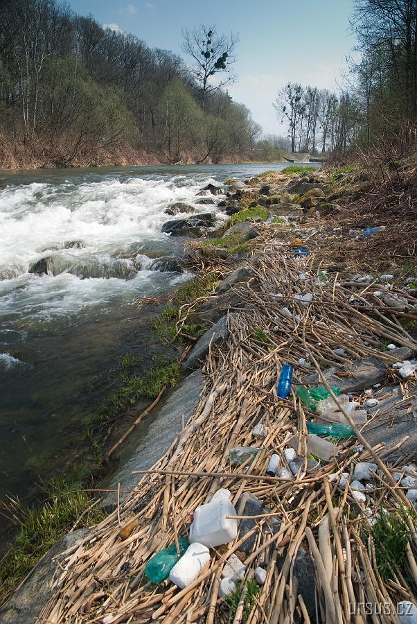 Rožnovská Bečva a pozůstatky jarních povodní.