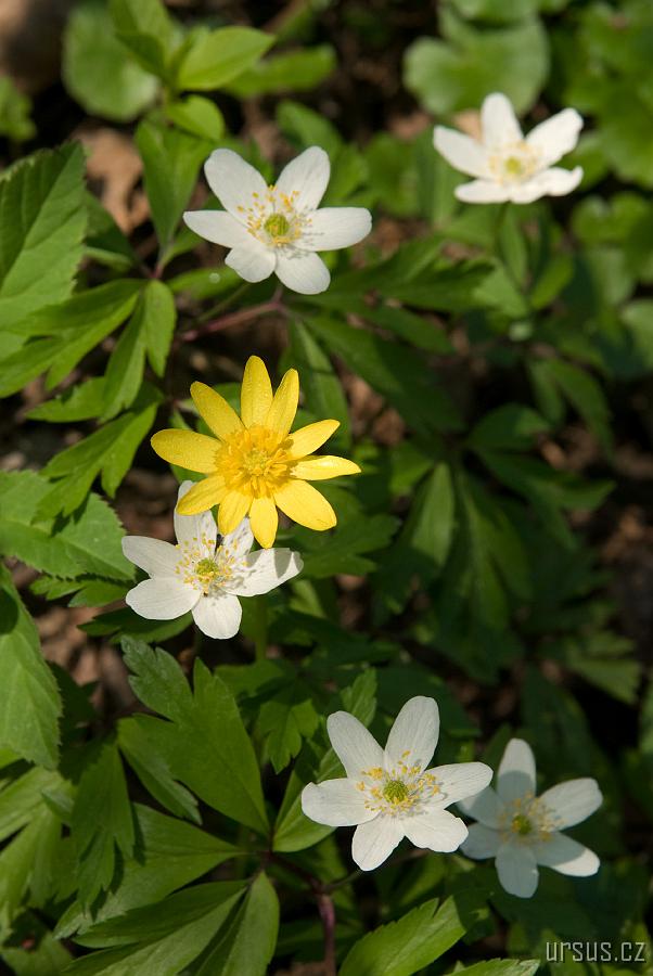 sasanka bílá (Anemone nemorosa) a orsej jarní (Ficaria verna)