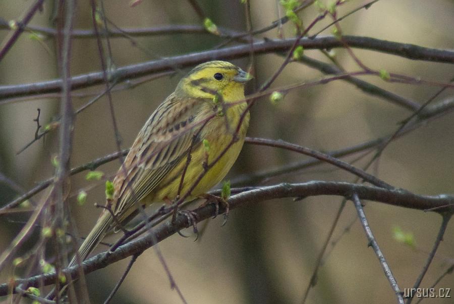 V lese pak potkáme strnada obecného (Emberiza citrinella)