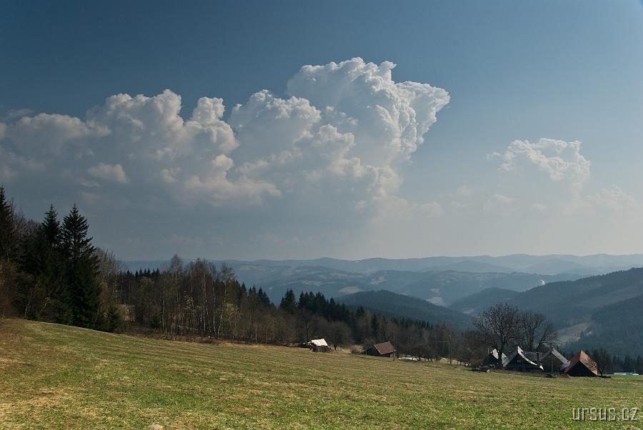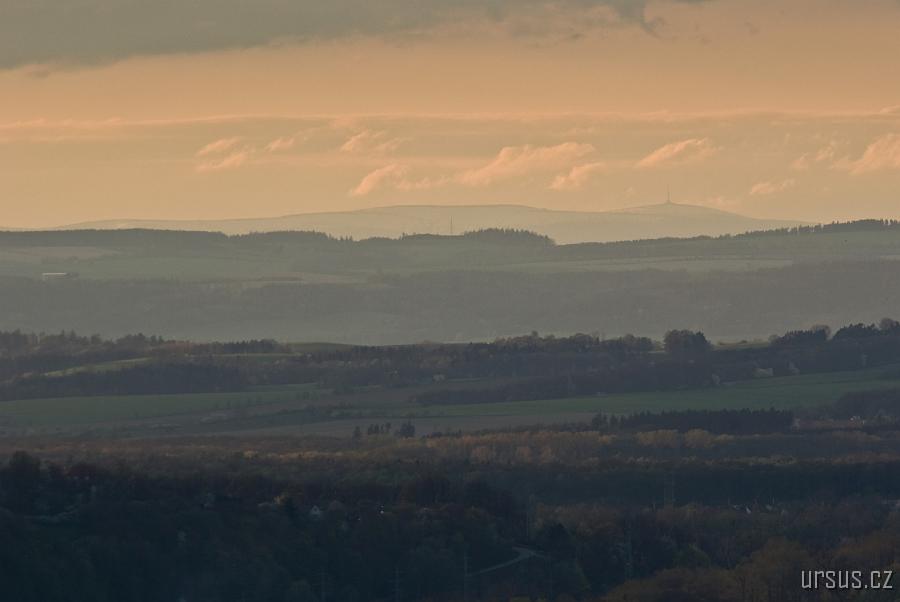 Podívejme se blíž- je to on! Čistý jarní vzduch profouklý studenou frontou umí zázraky- téměř 100km vzdálenou nejvyšší horu Hrubého Jeseníku mám jako na dlani.