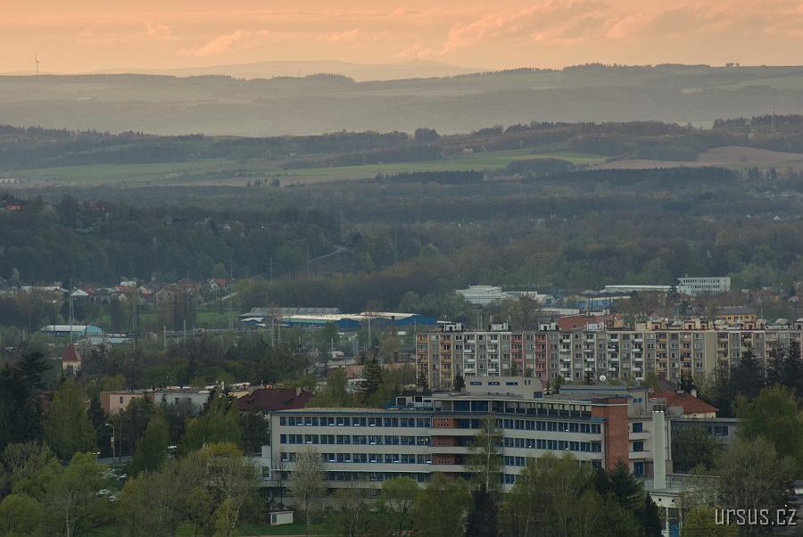 Ne, nechci vám popisovat jednotlivé budovy v našem městě. Na této fotce je něco zajímavějšího- ta hora s vysílačem úplně na obzoru je totiž Praděd!