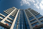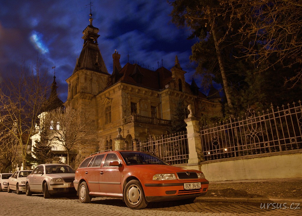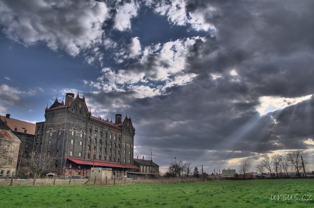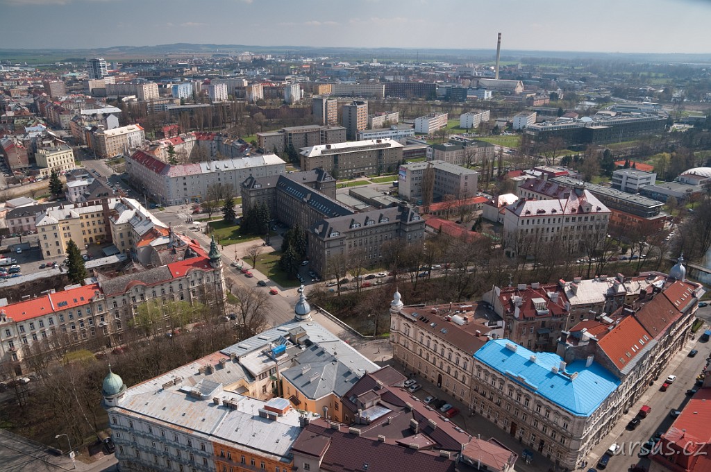 ...který ostře kontrastuje s moderní výškovou budovou Regionálního centra Olomouc.