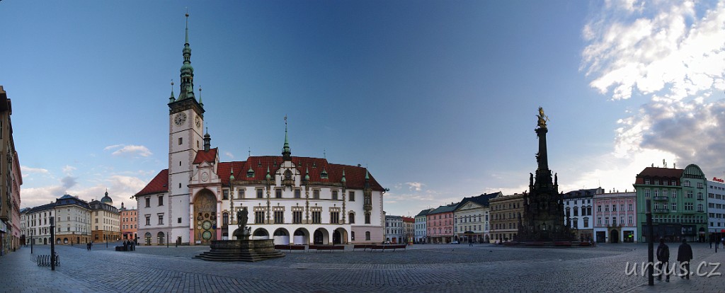 Centrum města:vlevo radnice a Sloup, vpravo sv.Mořic a v popředí kostel Panny Marie Sněžné.