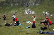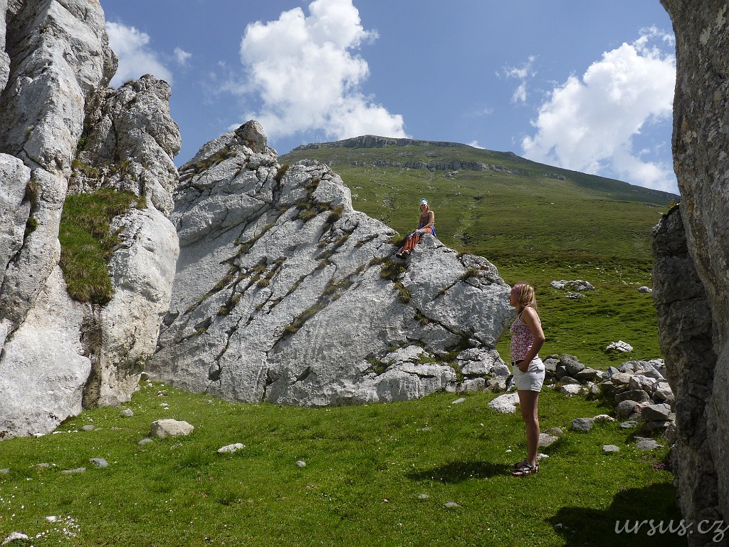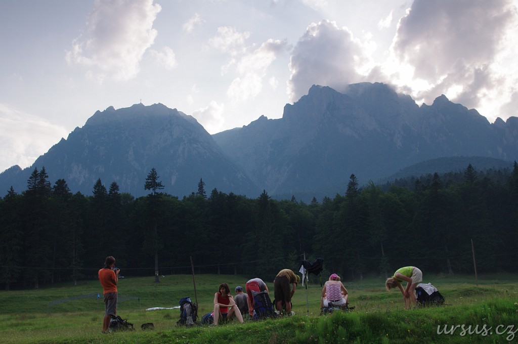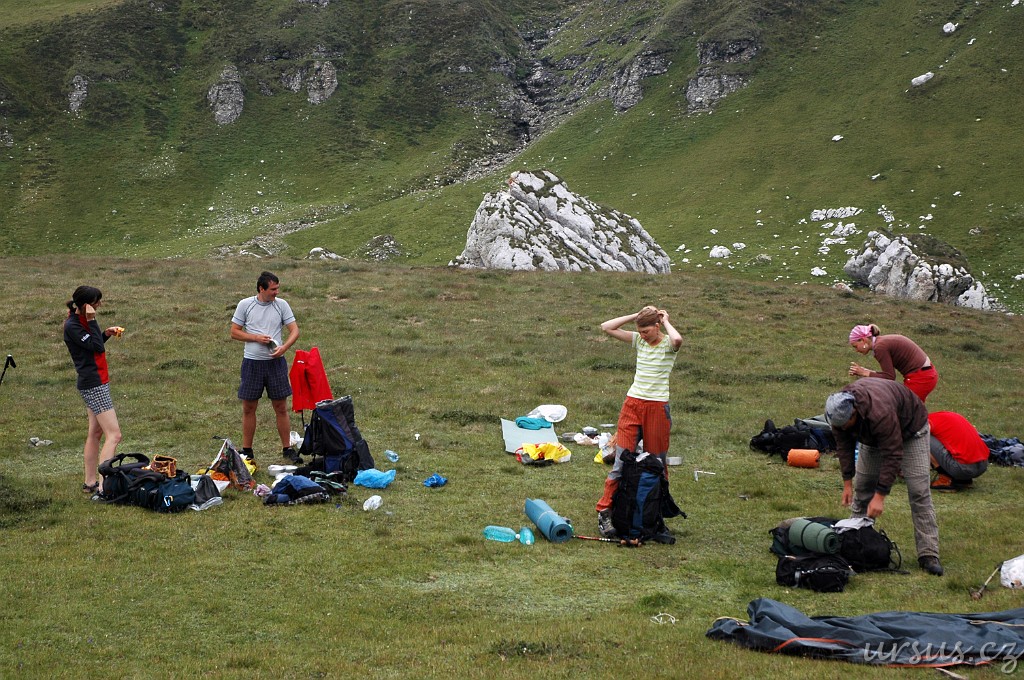Šest nejrychlejších a nejméně unavených hřebců a klisen se ještě vydalo na Omul (2505m n.m.), já s Maruškou jsme čekali v sedle, odpočívali, vařili kafe a vybírali místo na spaní.