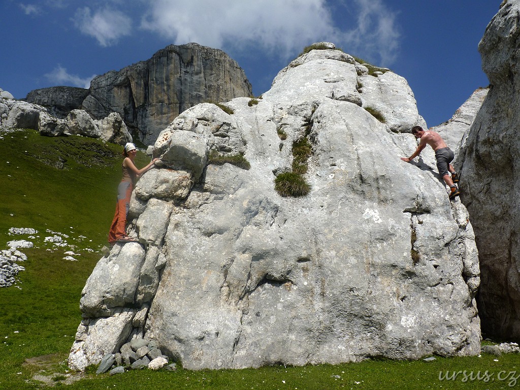 Po krásné bouřlivé noci:) jsme se opět rozdělili na dvě skupiny - údernou a zevlující. Úderná skupina vyrazila ve složení Hus, Víťa, Fenek a Evča dolů údolím k pravoslavnému klášteru a přilehlé jeskyni. My zbylí zevlující členové jsme objevovali místní bouldery, odpočívali, užívali si sluníčka a já s Maruškou jsme se ještě vydali na Omul, kde jsme předešlý den nebyli.