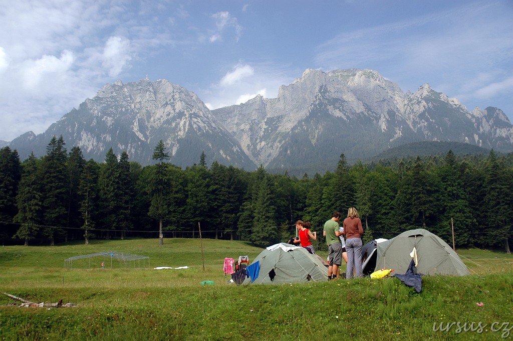 Po chvíli hledání a doptávání se jsme došli do kempu na kraji města. Nikdo tu nic nevybíral, nikdo se tu o nic příliš nestaral. My byli spokojení, že nikdo nic nechce a máme rovný plac na stany s nádherným výhledem na stěny Bucegi.