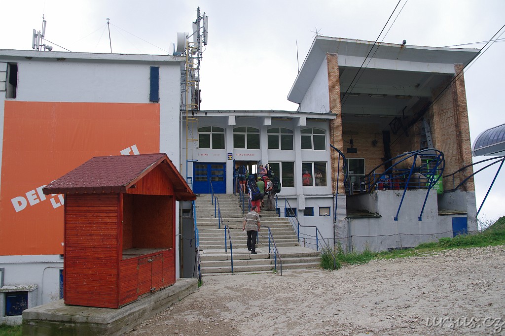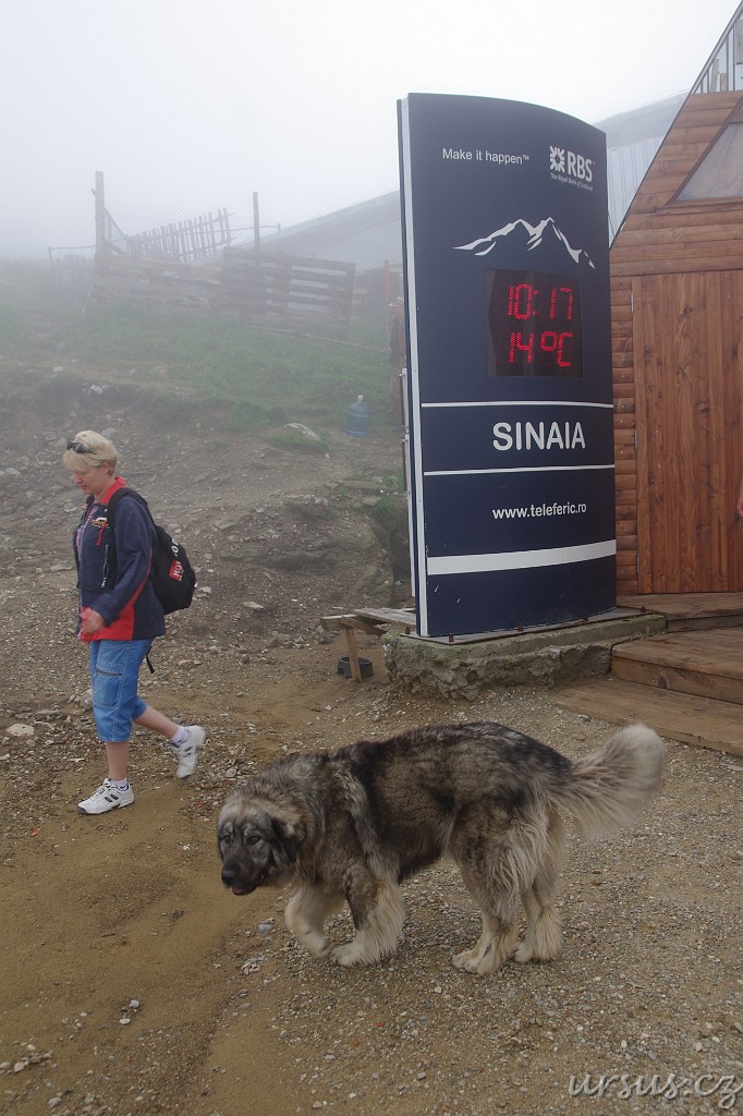 Z lanovky jsme bohužel viděli úplné houno, protože byla mlha. Nahoře nás krom velkých hafanů přivítalo "příjemné" počasí s teplotou 14°C, rozdíl oproti hotelu asi 10 stupňů:)