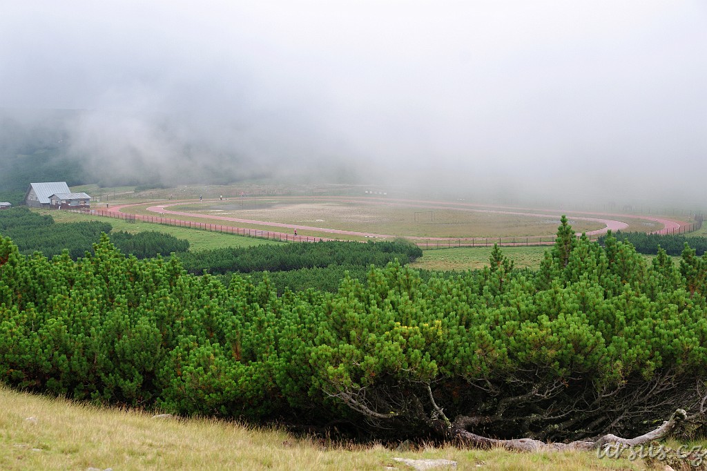 Tohle nás všechny šokovalo...Běžecký okruh ve výšce skoro 2000m, jen tak, uprostřed hor a kosodřeviny. Za ním se vesele pásly stáda ovcí a koní:) Běhalo se tu ovšem jak o život a běžci vypadali velmi zkušeně, třeba to byli rumunské atletické špičky:X