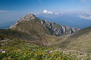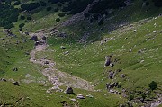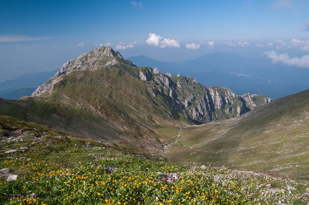 Pohled na strmou cestu na Omul z hluboko položeného údolí (nikoliv našeho) a na protější vrchol Costila (2490m).
