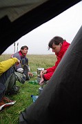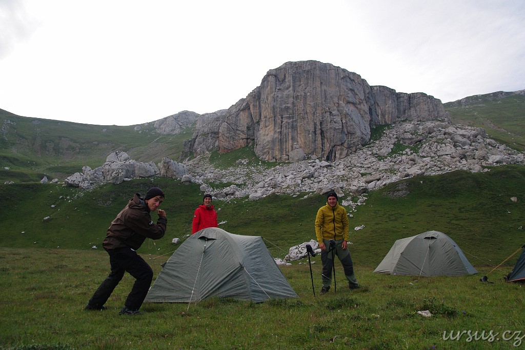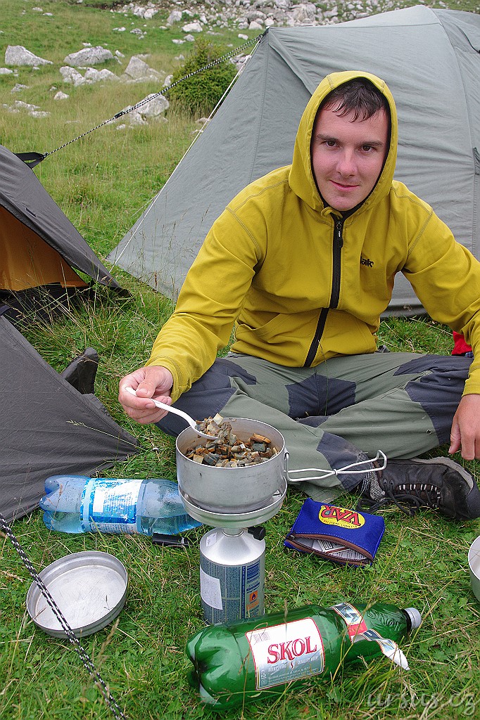 Víťův výraz hovoří za vše, blíží se něco nepříjemného...A taky že přišlo. Vlna silných bouřek a dešťů udělala z většiny stanů plovoucí vory a tak se většina výpravy vydala na strastiplnou cestu zpět do asi 1km vzdáleného turistického refugia. My jsme měli s Maruškou poměrně sucho, takže jsme zůstali na místě a sledovali stany, jestli náhodou nezatížené neuletí. naštěstí vydžely všechny:)