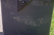Tohle je ona popelnice, u které viděli Luky a spol v noci medvídka. Ráno byla převrácená. Jsou na ni zřetelně vidět packy našeho medvídka:)