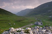Dlouhé široké údolí v jehož závěru jsou naše stany.