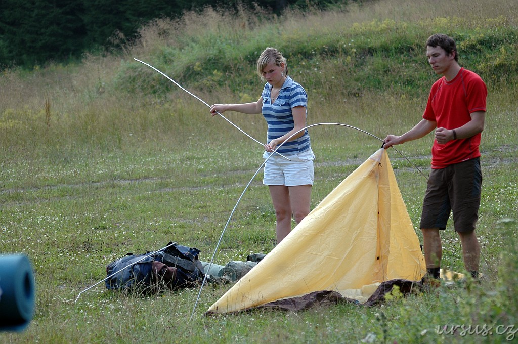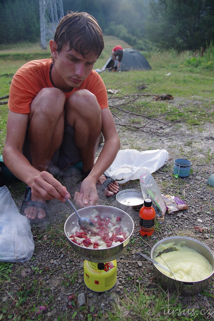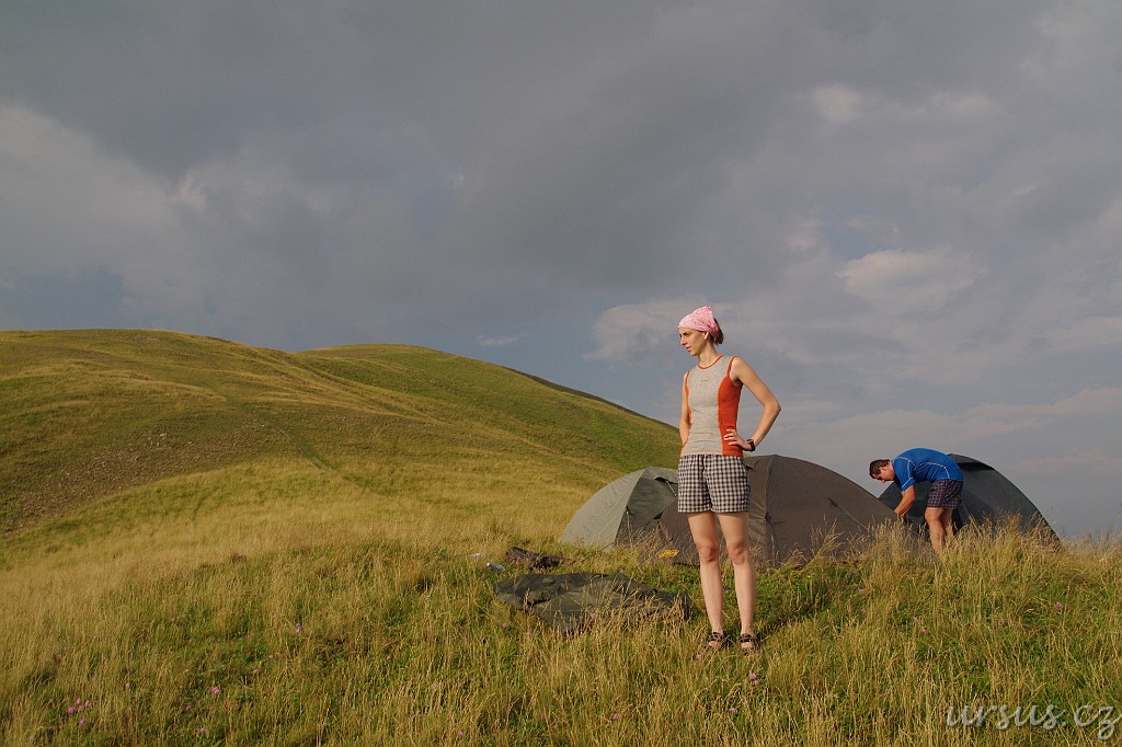 Nakonec jsme splnili plán a dorazili do sedla. Byl tu ideální travnatý plac na spaní, takže jsme už nic nevymýšleli a jali se rozbít tábor:)