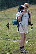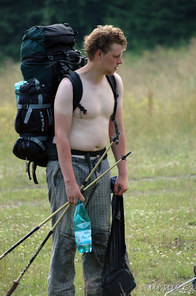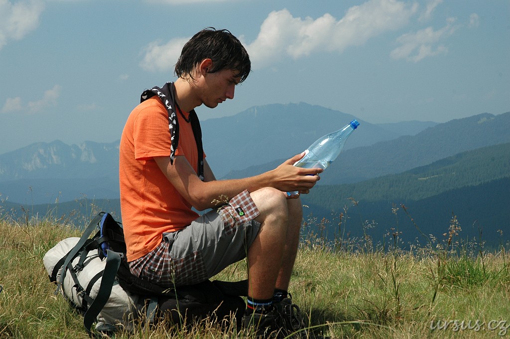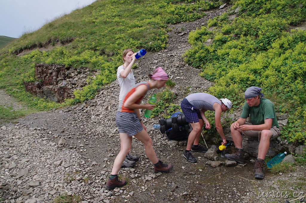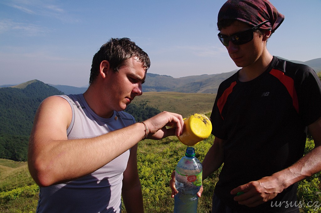 Nastává trošku problém s vodou. Na tábořišti voda nebyla a my doufali že na nějakou natrefíme po cestě dolů. Ovšem stále nikde nic. Nakonec jsme našli opravdu malé prameniště, kde jsme pracně nabrali pár flašek pomocí hrníčku. Jednu dvoulitrovku jsme plnili asi 15 minut.