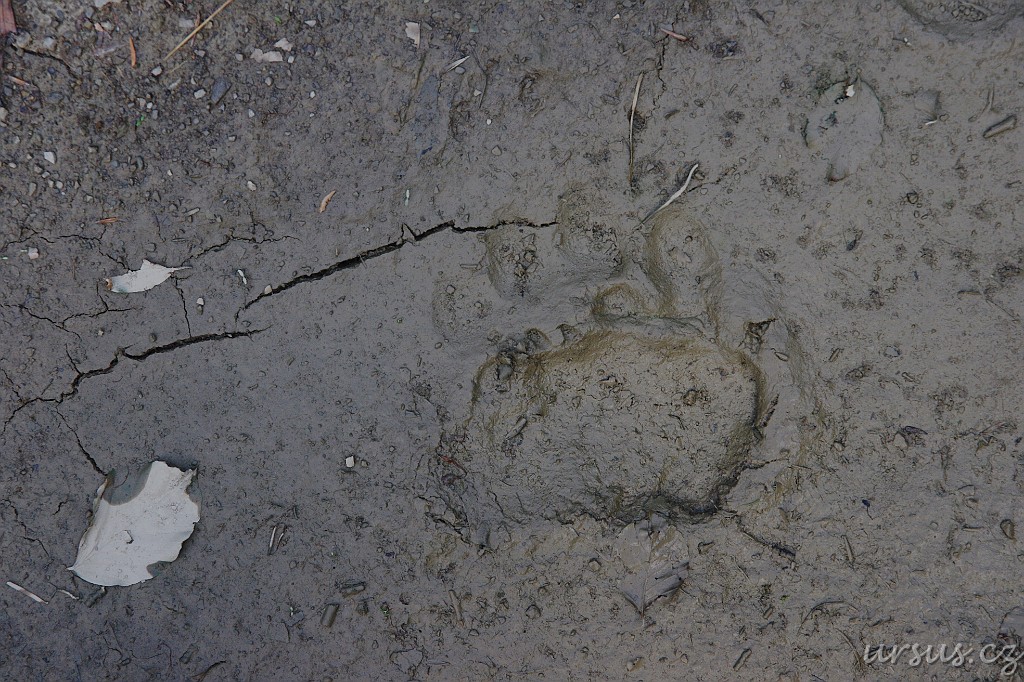 Postupně se ale začala zvedat, zužovat, otevřely se pěkné výhledy na okolní husté lesy a my potkali poprvé stopu medvědí. Tahle je přední.