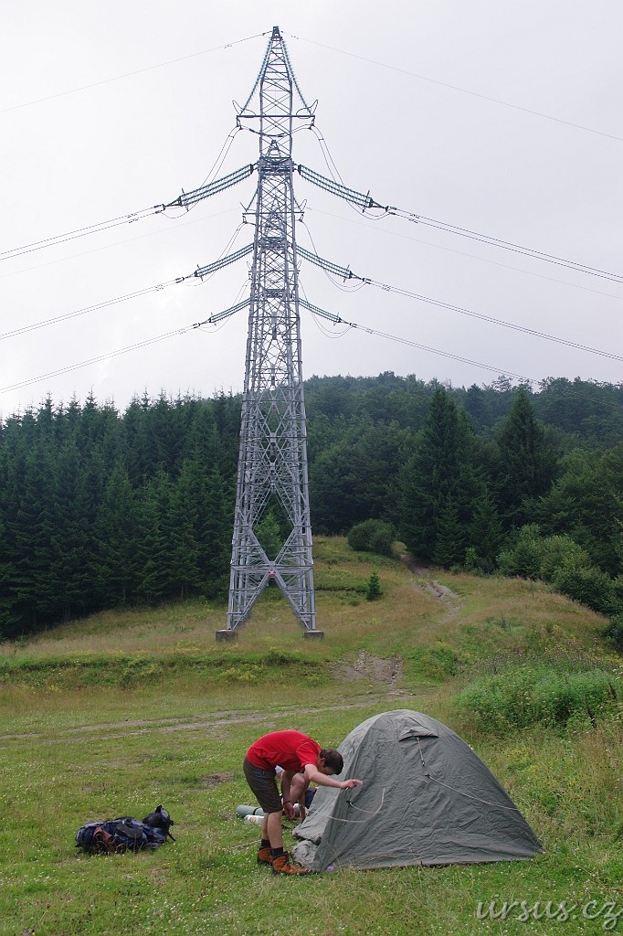 Celou cestu nahoru jsme šli kolem tohohle šíleného vedení, které procházelo sedlem a poté zase klesalo do dalšího údolí. Samo o sobě by nám tolik nevadilo, ale tento kovový obr vyluzoval neustále takové sršivé nebo spíš kapavé zvuky, takže jsme měli neustále pocit, že začíná pršet. Dosti nepříjemné...