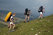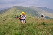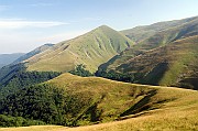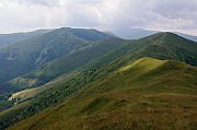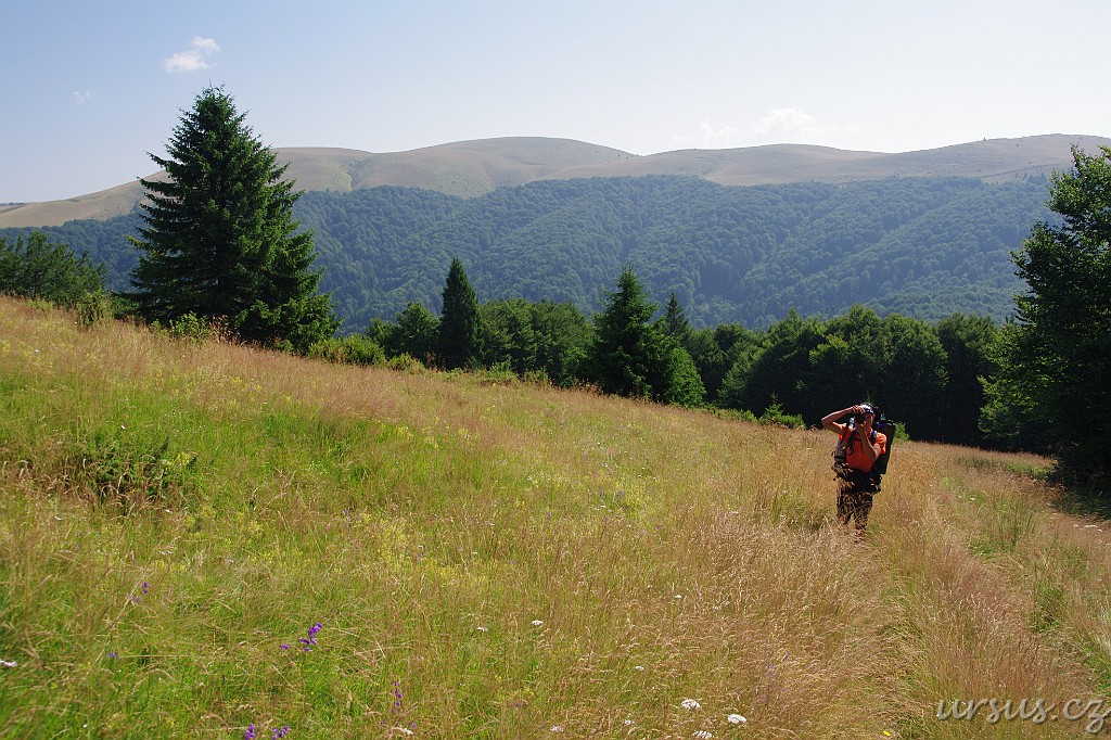 Hned po ránu nás čekal ostrý výstup lesem a pak už jsme se konečně dostali nad hranici souvislého lesa. Pěkně to jde vidět na příkladu protějšího hřebene.
