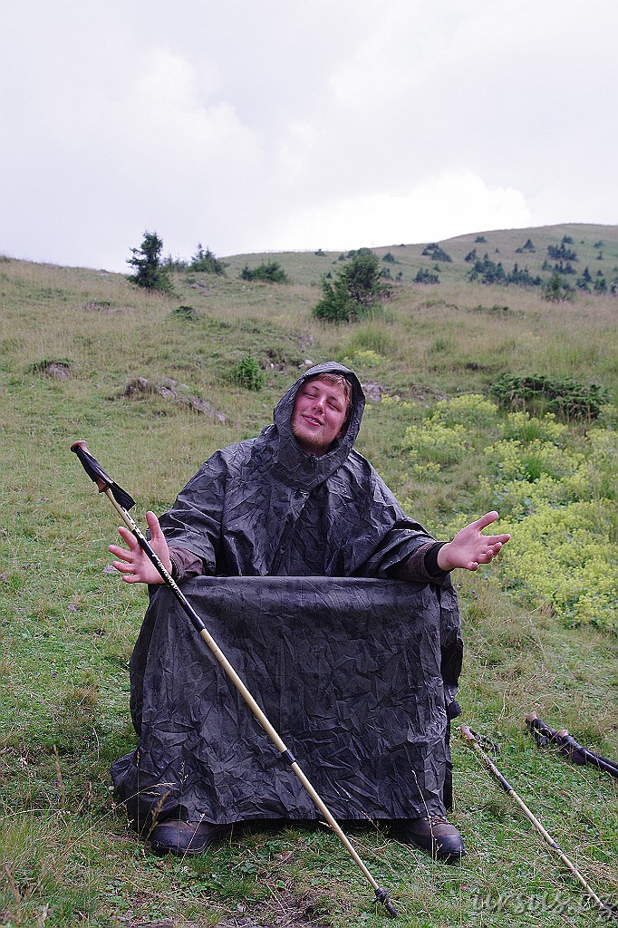 Poprvé a naposledy za celé dva týdny jsme vytáhli pláštěnky. Asi na 10 minut, kvůli malinké přeháňce.